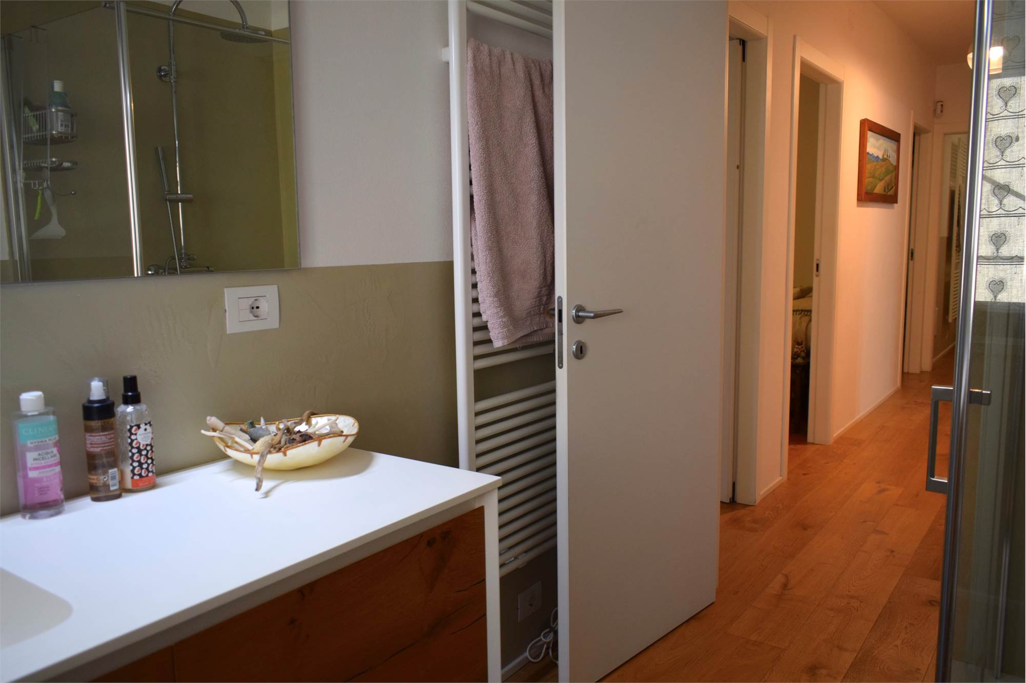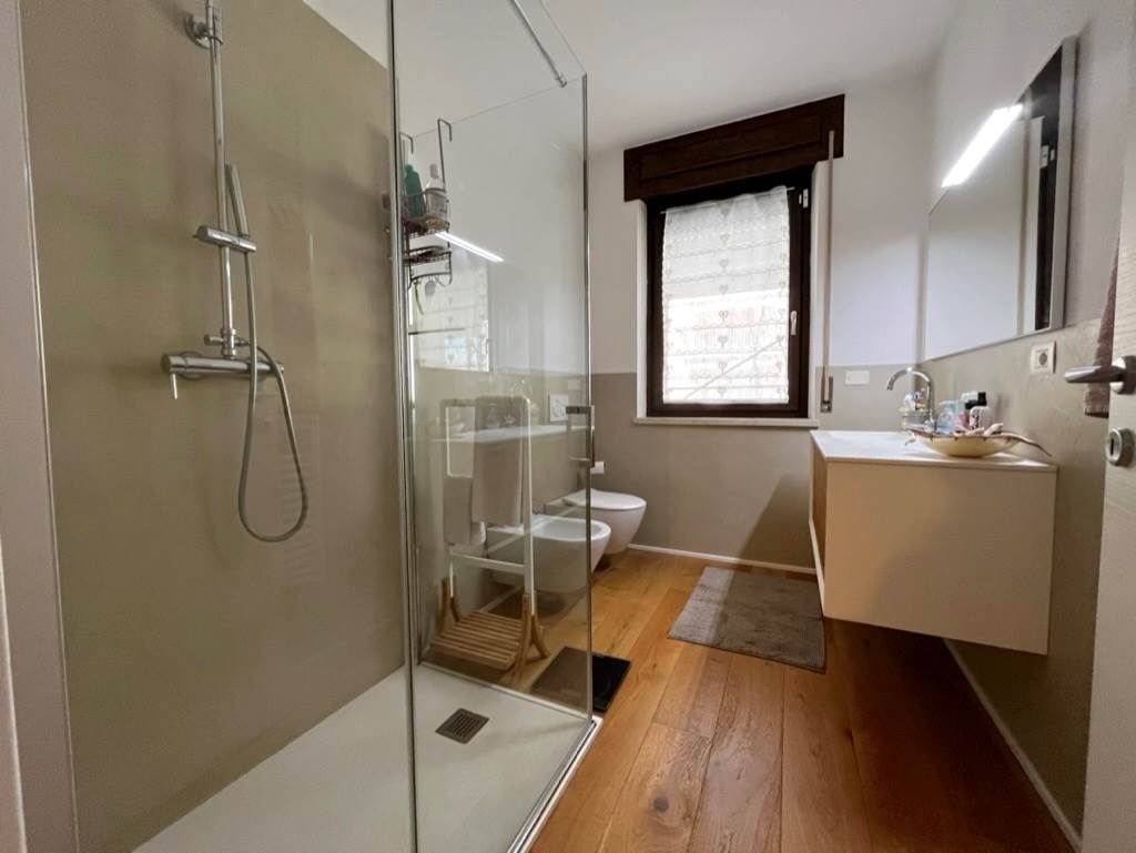 La casa è stata da poco rivestita con cappotto termoisolante e sono stati posizionati i pannelli solari ad uso condominiale. L'impianto di raffrescamento e del citofono sono domotici.