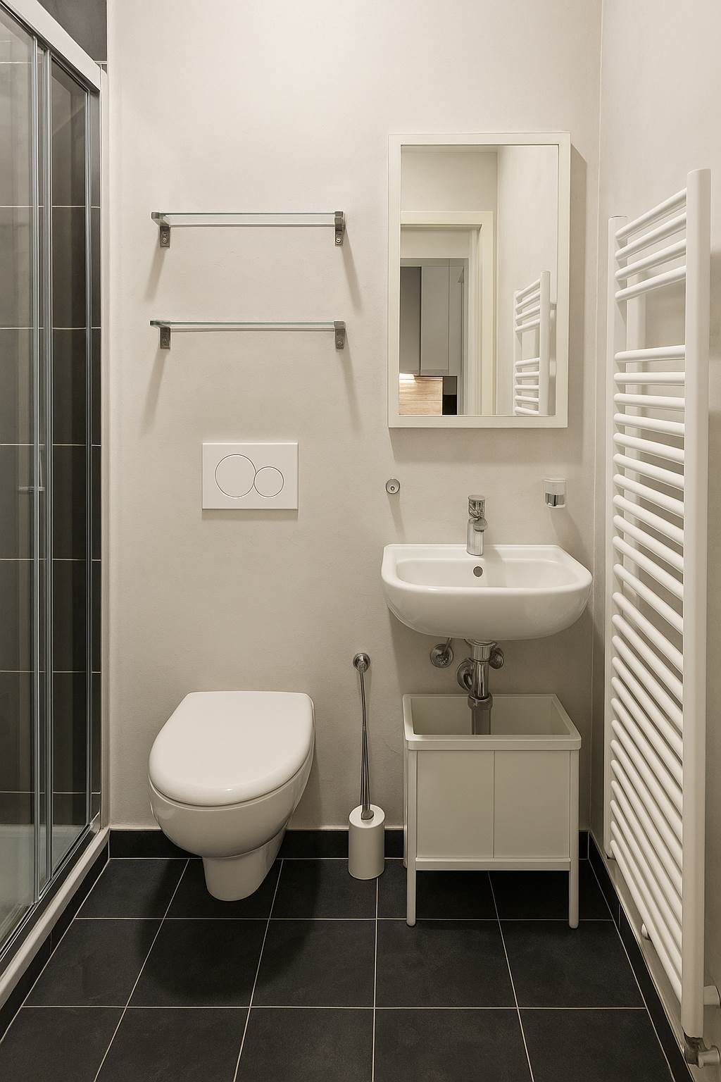 L’apparatamento è composto da ingresso/soggiorno con con angolo cottura, camera da letto matrimoniale e bagno.
